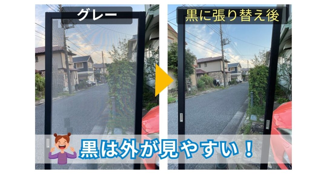 黒はグレーに比べて見通しが良く、今非常に人気の色です。新築にもよく使われています。